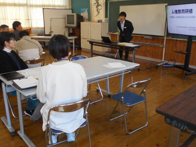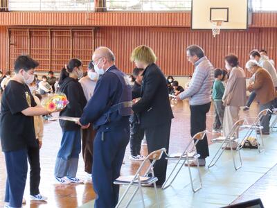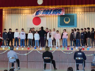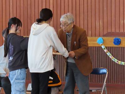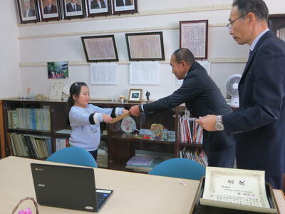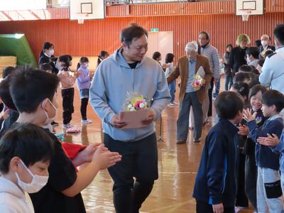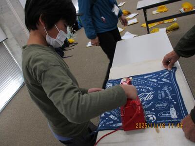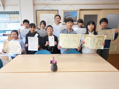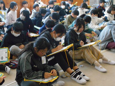 4年生は理科の時間に「水の温度と体積の変化」について学習していました。これまでに空気を暖めたり冷やしたりすると体積はどう変わるかについて調べています。今日は水の温度と体積の変化についてです。前回のことをもとに予想を立ててから実験しました。水道水を丸底フラスコに入れガラス棒を指し、水の位置に印を付けてから実験します。お湯で温めたときと氷水で冷やしたときの水の位置の変化から体積の変化をまとめました。