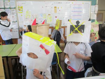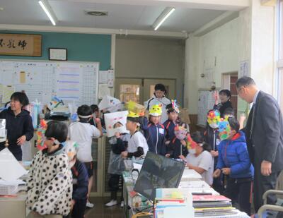 今日は2/3、節分です。1・2年生の子供たちは、図工の時間に作ったかわいい衣装を着けて、新聞紙を丸めて作った豆をまきました。教室と職員室で「鬼は外、福は内」と元気に邪気(鬼)を追い払い、福を招き入れてくれました。これで黒羽小学校もさらに安心・安全・幸せな学校となるでしょう。ありがとう(*^o^*)!