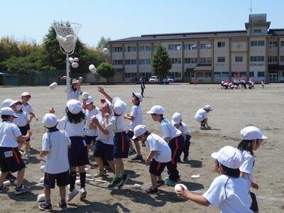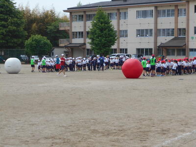 今日は2時間目に全校生で「大玉転がし」、業間に「全校ダンス」の練習をしました。