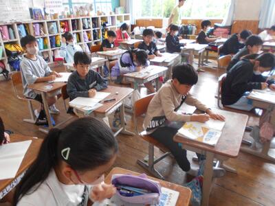 2年生は国語の「どうぶつ園のじゅうい」の学習で、教材文の内容と身の回りのことを比べて、自分が感じたこととそのわけを書く学習をしていました。自分の考えをもとに友達と話し合いながら学習を進め、考えを確かなものにしたり、深めたりしていました。