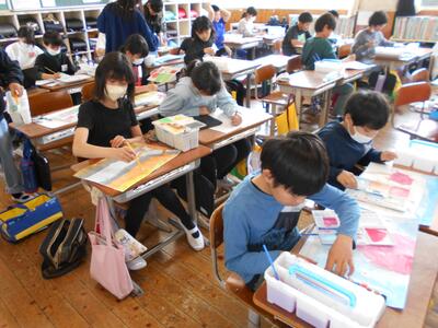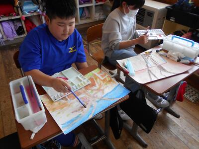 5年生は図工で「風を感じて」