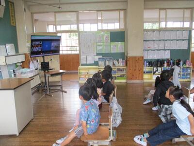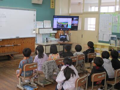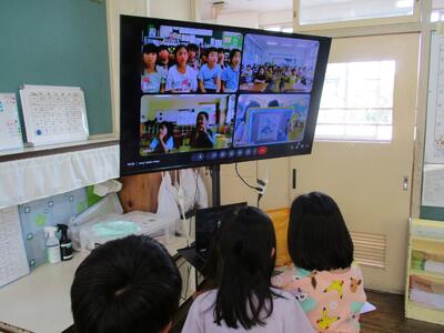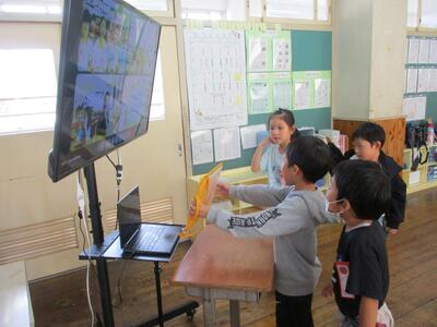 1年生は黒羽地区4小学校(黒羽小、川西小、須賀川小、両郷中央小)の1年生と「学校の周りの様子」について、リモートで交流をしました。はじめてのリモートでの発表で、緊張していましたが、はっきり発表できました。がんばったね(*^o^*)。黒羽小学校の周りには、侍門や倉、セブンイレブン、洞窟などがあることを伝えました。それぞれの学校の周りにあるものを聞いて、同じものや違うものがあることに気付きました。他校の発表を聞きながら、幼稚園や保育園の時の友達が映ると、うれしそうにしていました。