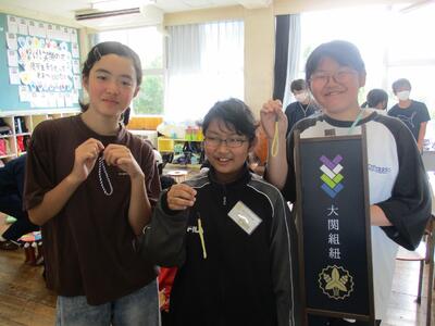 6年生は黒羽観光協会の方に来ていただき、大関組紐体験をしました。はじめに、大関組紐に関することを聞きました。その後、講師の話を聞きながら、組紐づくりに取り組みました。最初のうちはうまくできず、戸惑っている様子もありましたが、友達や講師の方と一緒に、上手に作ることができました。黒羽観光協会の講師のみなさん、ありがとうございました(*^o^*)!