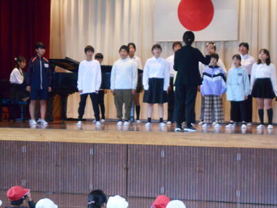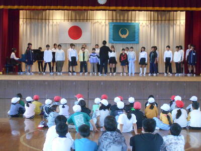 昼休みには、合唱部と6年生による歌「君をのせて」の発表を行いました。10/23(木)に那須野が原ハーモニーホールで行われる大田原市教育祭音楽会に向けて、全校生の前で発表をしました。これまで練習を重ねてきたことで、とてもきれいなハーモニーで、上手に歌うことができていました。10/23も黒羽小学校の代表として、堂々と歌ってきてほしいと思います。
