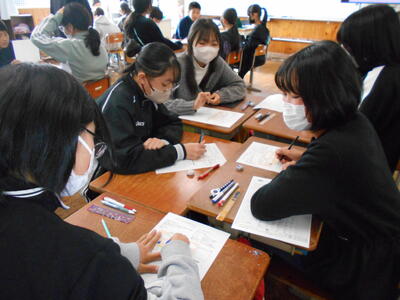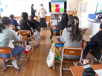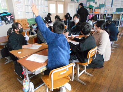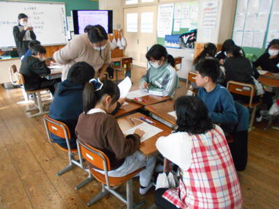 6年生は学活の時間に黒羽中学校栄養教諭に来ていただき、「給食の1食分の献立作り」の学習をしました。栄養教諭から普段の給食をもとに栄養のバランスや食材、調理法、味のバランス、彩りなど工夫していいることを学びました。その後、グループごとに協力しながら給食のメニューを考えました。まずは主食を米にするのかパンにするのか、麺類にするのか。そして、主菜や副菜、汁物をどうするかをみんなで意見を出しながら考えました。45分間では決まらず、続きは家庭科の時間に話し合うそうです。1月の「黒羽小学校リクエスト献立」が楽しみです。