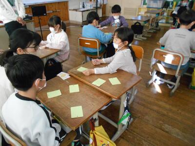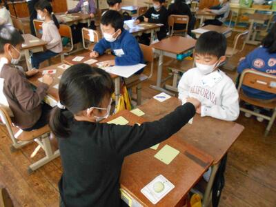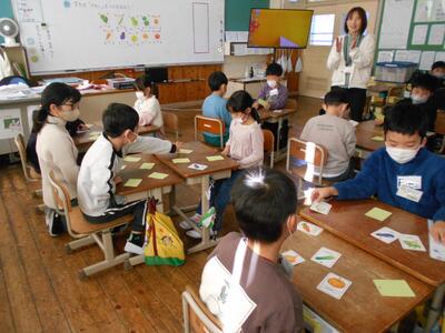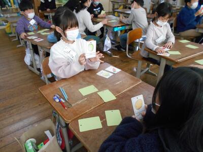 2年生は英語活動の時間に「すきなやさいをつたえあおう」の学習をしました。絵カードを使って野菜の英語表現に慣れ親しむ活動を行いました。分からない表現は先生方に確認しながら意欲的に進めていました。野菜の英語表現に慣れ親しんだ後には、「Do you like ~?」を使って質問したり、「Yes I do.」や「No I don't.」を使って答えたり楽しみながら学習していました。子供たちはたくさん英語表現を使うことでどんどん話せるようになっていて、すごいなと感心しました。