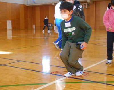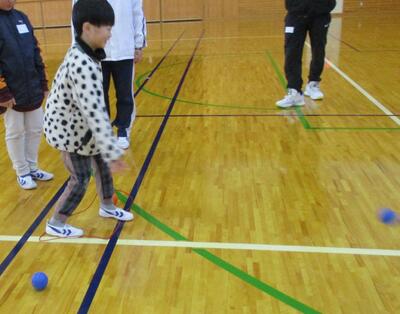 黒羽学園特別支援学級の合同交流会を黒羽中学校の体育館で行いました。楽しく交流できるようにと中学生が考えてくれたペタンクをして中学生や他校の小学生と一緒に活動し、楽しくふれ合うことができました。ボールが円に入るととても喜んでいました。最後には中学生からメダルのプレゼントをいただきました。参加したみなさん、ありがとうございました(*^o^*)!。