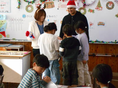 2年生:英語活動「季節のカード作り」、5年生:外国語「和製英語と英語の違い」