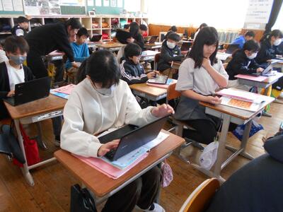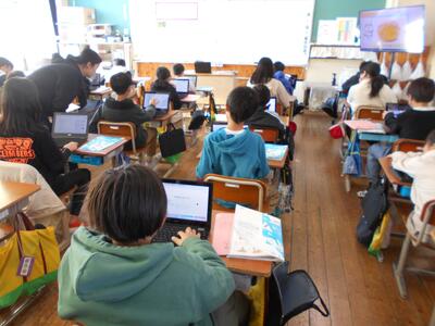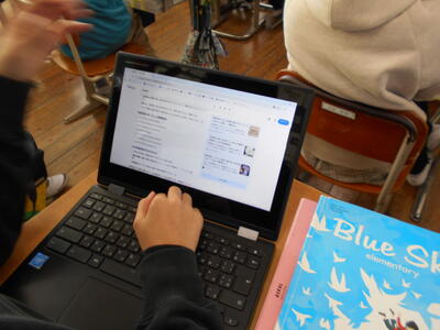 5年生の外国語では、和製英語と英語の違いについて学習していました。「シュークリーム(cream puff)」や「エアコン(air conditioner)」、「サラリーマン(office worker)」などたくさんの和製英語が分かり、子供たちも驚いていました。