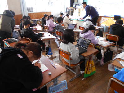 4年生は算数の小数のわり算で割り切れるまで計算する問題に取り組んでいました。商の見当、かけ算、引き算を何度も繰り返すので、計算力が必要です。また、小数点を付けることを忘れないようにします。友達との学び合いながら学習をしたり、早く終わった子はタブレットで計算問題に取り組んだりしています。これからも繰り返し練習をしていくことで、計算ミスをなくし、できるだけ速く計算できるようにしていきましょう。