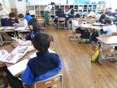 2年生は国語の時間に「あったらたすかると思うロボット」を考え、説明する文章を書いていました。医療関係や乗り物関係、掃除関係など「こんなロボットがあったら助かるな」と思うロボットについて、図鑑やインターネットを活用して調べ、ワークシートにまとめていました。これからの社会にはきっと2年生が考えた助かるロボットがたくさん出てくるのかなと思いました。2年生もしっかり調べて、しっかりまとめていました。情報活用能力や表現力が高まってきていて、うれしく思いました。