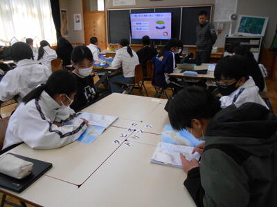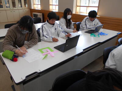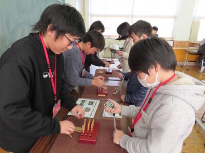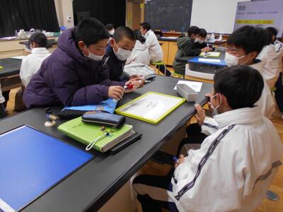 6年生は黒羽中学校で黒羽中学校1年生と川西小・須賀川小・両郷中央小・黒羽小の6年生と合同学習会を行いました。国語「言葉で遊んで学ぼう~ことわざ・熟語の世界~」、社会「みんなで挑戦!地理クイズバトル」、数学「自分で描いた図形を回転させてみよう」、理科「月の満ち欠け」、英語「君の得意技は何だ?!」の中から事前にアンケートをとり、自分の興味のある学習に取り組みました。はじめは緊張しているようでしたが、4月からは同じ黒羽中学校で学ぶ仲間と一緒に楽しみながら学習し、交流を深めました。