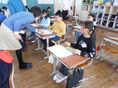 1年生:図工「しんぶんしであそぼう」、3年生:算数「そろばん」