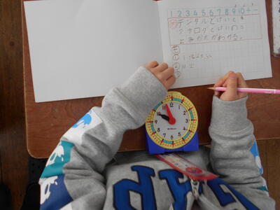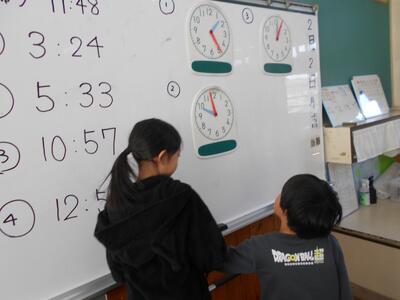 1年生は算数の時間に時計の読み方の学習をしていました。今の時代、デジタル時計が多く見かけ、時刻の読み方も簡単にできます。でも、まだまだアナログ時計もあります。分針を読むことが難しそうでしたが、5跳びで数え、正確な時刻を答えることができていました。ぜひ御家庭でも時計の読み方の学習をしてください。