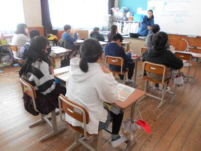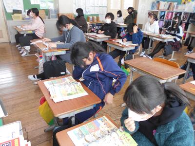 6年生は外国語の授業で「中学校の部活動」について、イラストをヒントに英語での会話文の聞き取りをしていました。英語のスピーチを聞き取るのは大変そうでしたが、中には会話の内容を一度聞いただけでほぼ理解している子もいてびっくりしました。また、中学校での部活動を楽しみにしている子もいました。