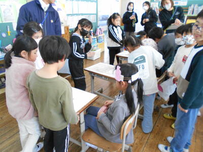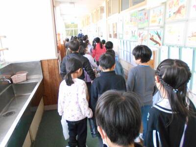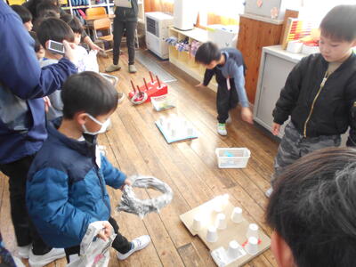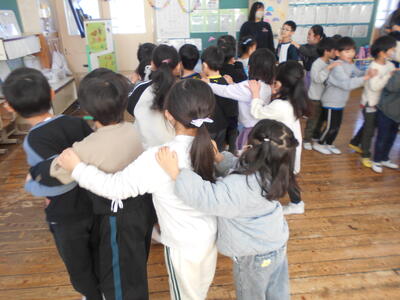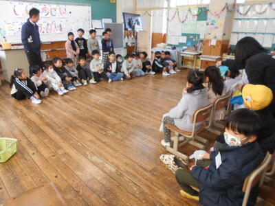 1年生はこの4月に本校に入学する幼稚園生や保育園生との交流会を行いました。1年生は生活科の授業などでこの交流会の準備を進めてきました。始めに1年生と幼稚園生・保育園生が一緒に手をつないで、学校探検をしました。その後、教室でじゃんけん列車や福笑い、輪投げなどをして楽しみました。最後に一緒に歌を歌い、1年生からメダルのプレゼントをしました。1年生はお兄さん、お姉さんとしてやさしく振る舞い、楽しく過ごすことができました。4月に入学してくるみなさん、楽しみにしていますね。