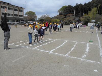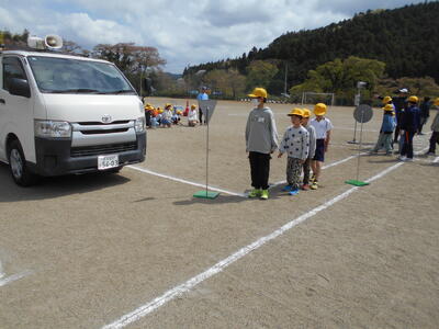 今日は2時間目に交通安全教室を行いました。大田原市総合政策部危機管理課地域安全係の講師の方から道路での歩き方や横断歩道、歩行者用信号の渡り方などについて、お話を聞きました。その後、登校班ごとに模擬道路を歩きました。子供たちからは「道路の安全な歩き方が分かった」、「飛び出しは危険なことが分かった」などの感想がありました。